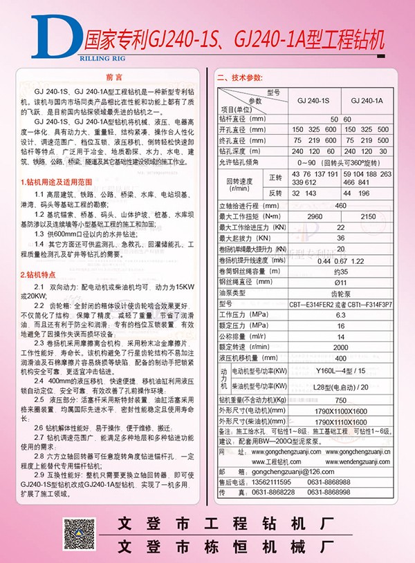 GJ 240-1S型鉆機產(chǎn)品熱銷城市:山東,浙江,廣東,江蘇,河北