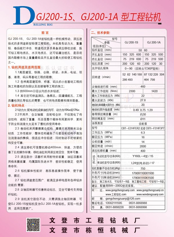 GJ-200S型鉆機(jī)